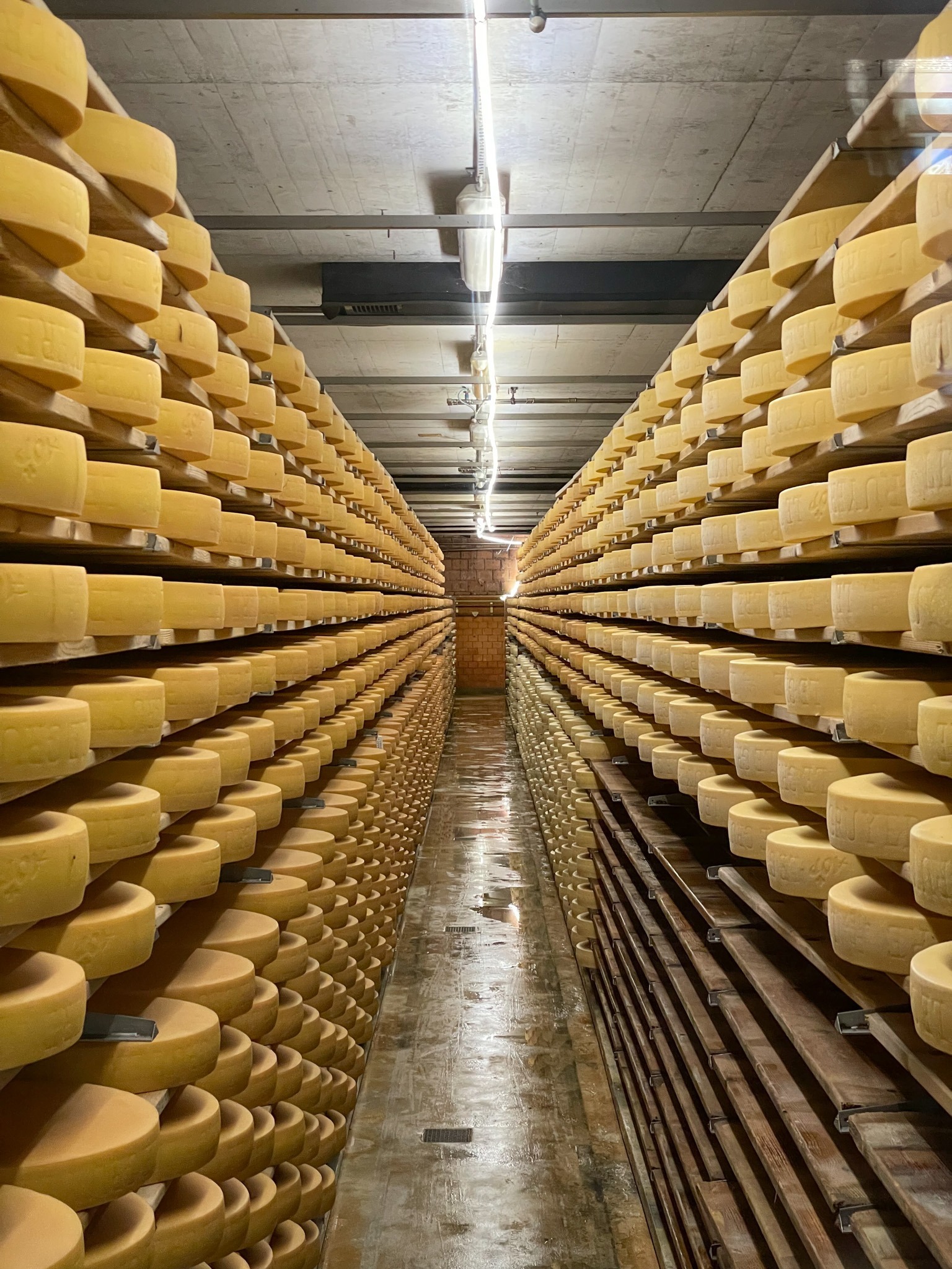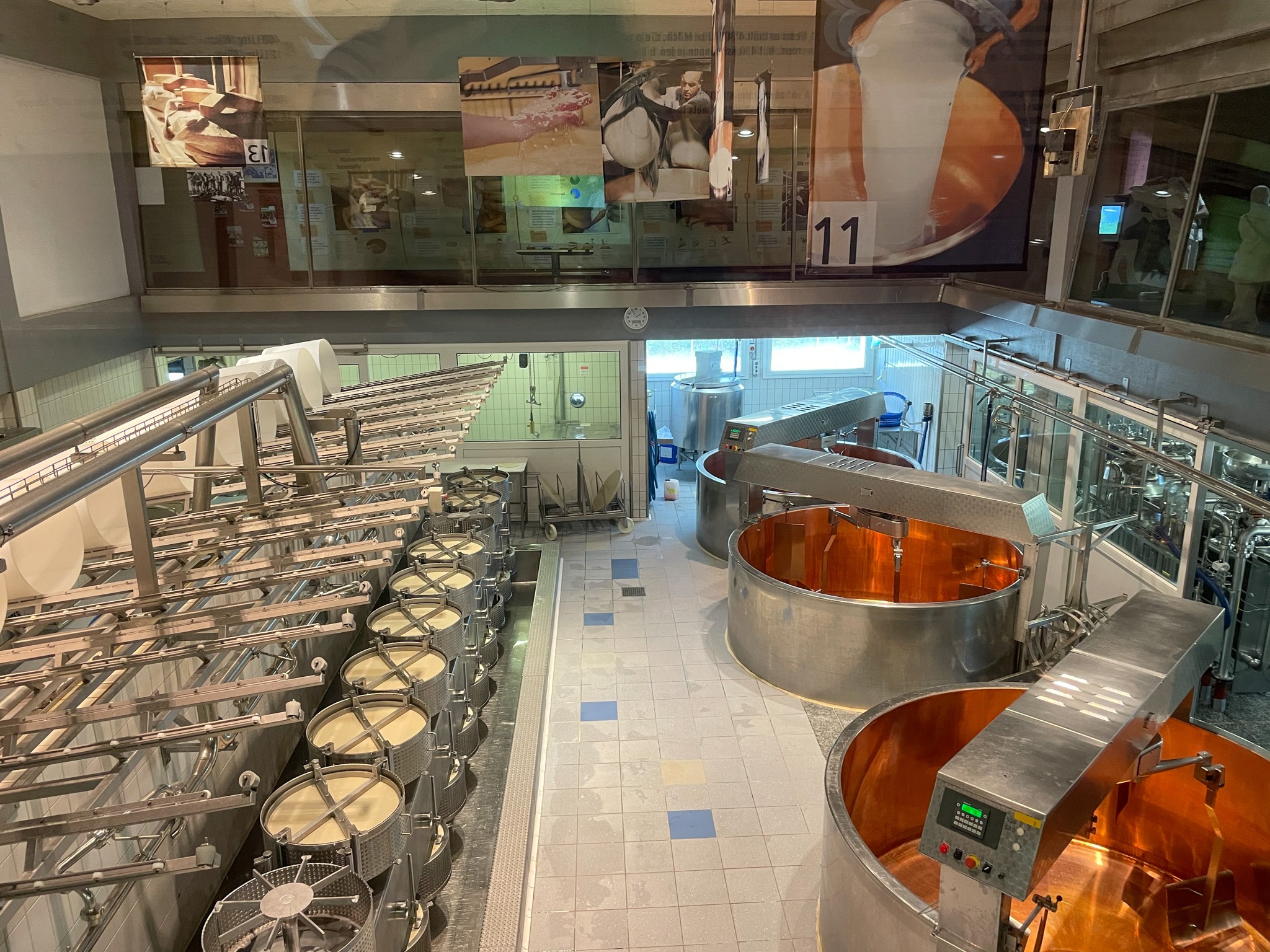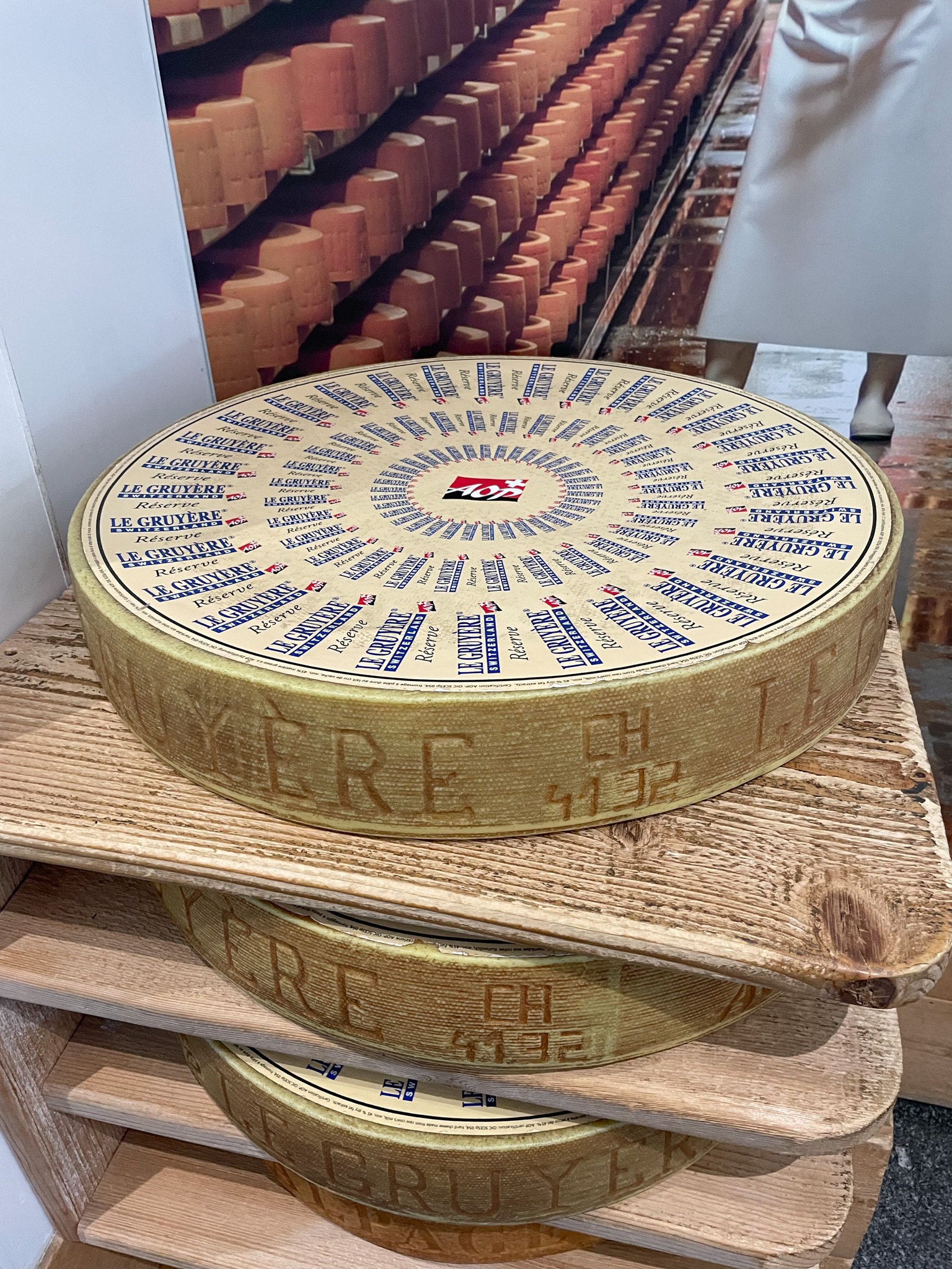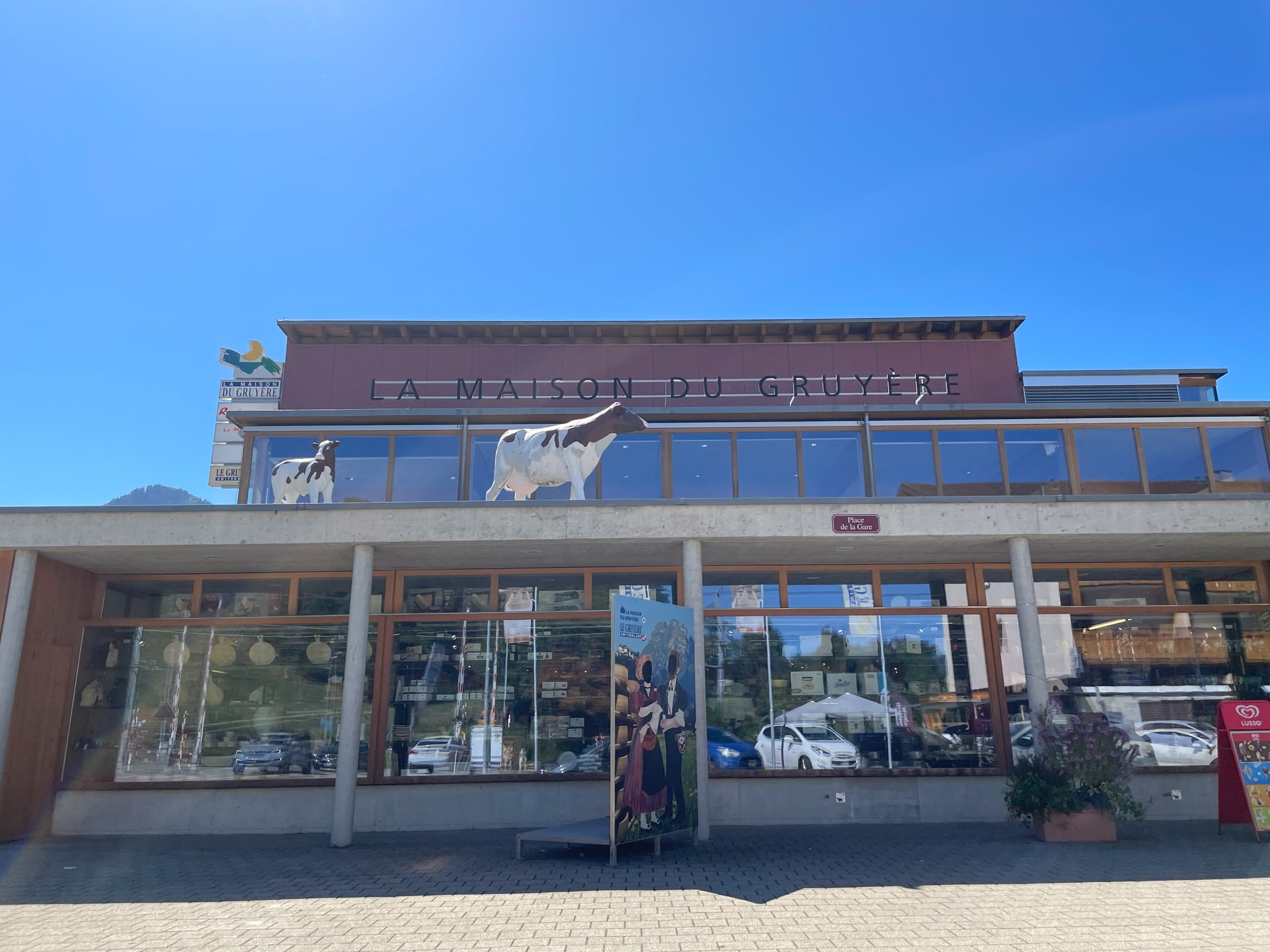 La Maison du Gruyères is only a short distance from Gruyères, we’re talking a 15 minute walk or a 3 minute drive, so it is great place to visit after spending the first part of the day in Gruyères. If you are driving there is a large car park around the back and you get 1 hours parking for free if you are visiting the cheese factory, which is all the time you will need. It is only a small place in comparison to the other cheese manufacturers you can visit throughout Switzerland, (Emmental Schaukäserei and Appenzeller Schaukaserei are both much larger and with a bit more history to the cheese), but it is still very much worth visiting La Maison du Gruyères.