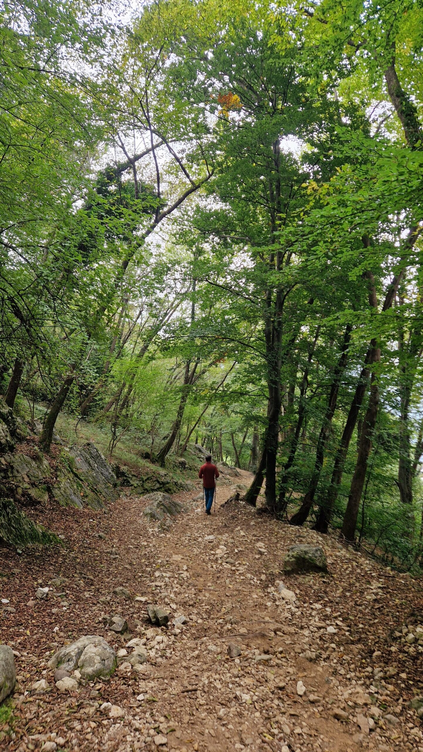 After walking up through the park you start to walk out along the ridge line through the chestnut forests, there aren’t many panoramic views through this section of the hike, so when you do pop out of the forests around 45 minutes later you are met with the most insane views over both Switzerland and Italy. We suggest either bringing a picnic with you to have here or stopping at Ristorante Vicania for lunch which is just a short walk downhill from where the forest opens up. This is along the route you have to follow anyway, and it has a lovely terrace you can sit on.